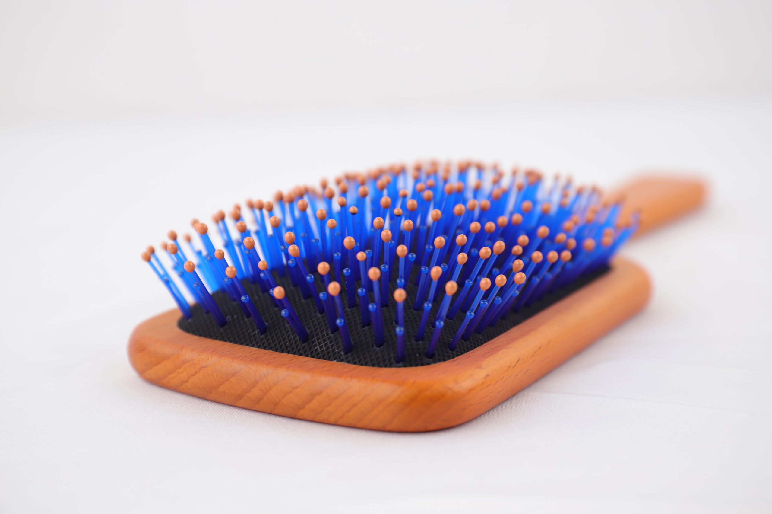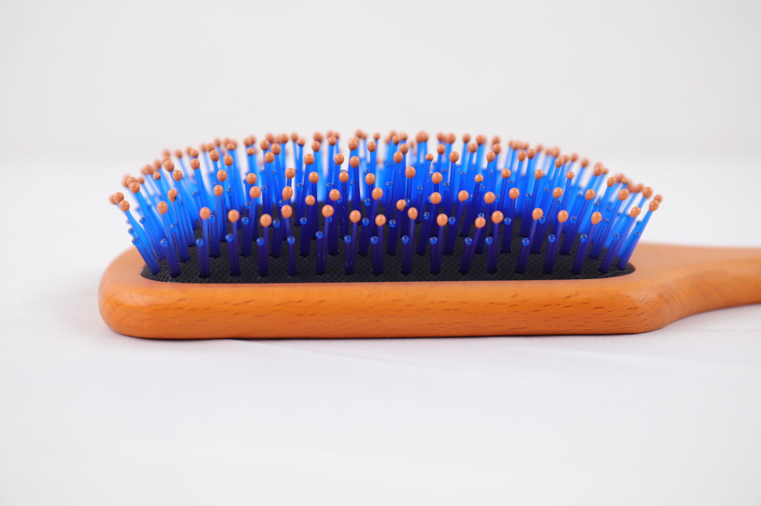 在梳頭時(shí),經(jīng)絡(luò)按摩梳上藍(lán)色短小珠頭不會(huì)劃傷頭皮,起到保護(hù)頭皮的作用。