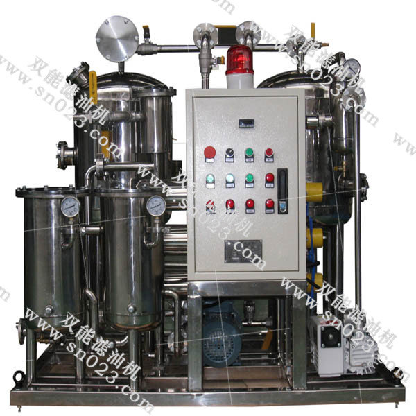 專因EH油的特性而研制的凈化設(shè)備,待凈化油在進(jìn)口泵的抽吸作用下,進(jìn)入粗濾系統(tǒng),經(jīng)處理大顆粒雜質(zhì)被除去,再送至精濾系統(tǒng),去除微細(xì)雜質(zhì),然后進(jìn)入真空室進(jìn)行脫水、脫氣處理。凈化后的油經(jīng)出口泵送出,也可以送回到精濾系統(tǒng)作循環(huán)處理,以達(dá)到更高的精度。